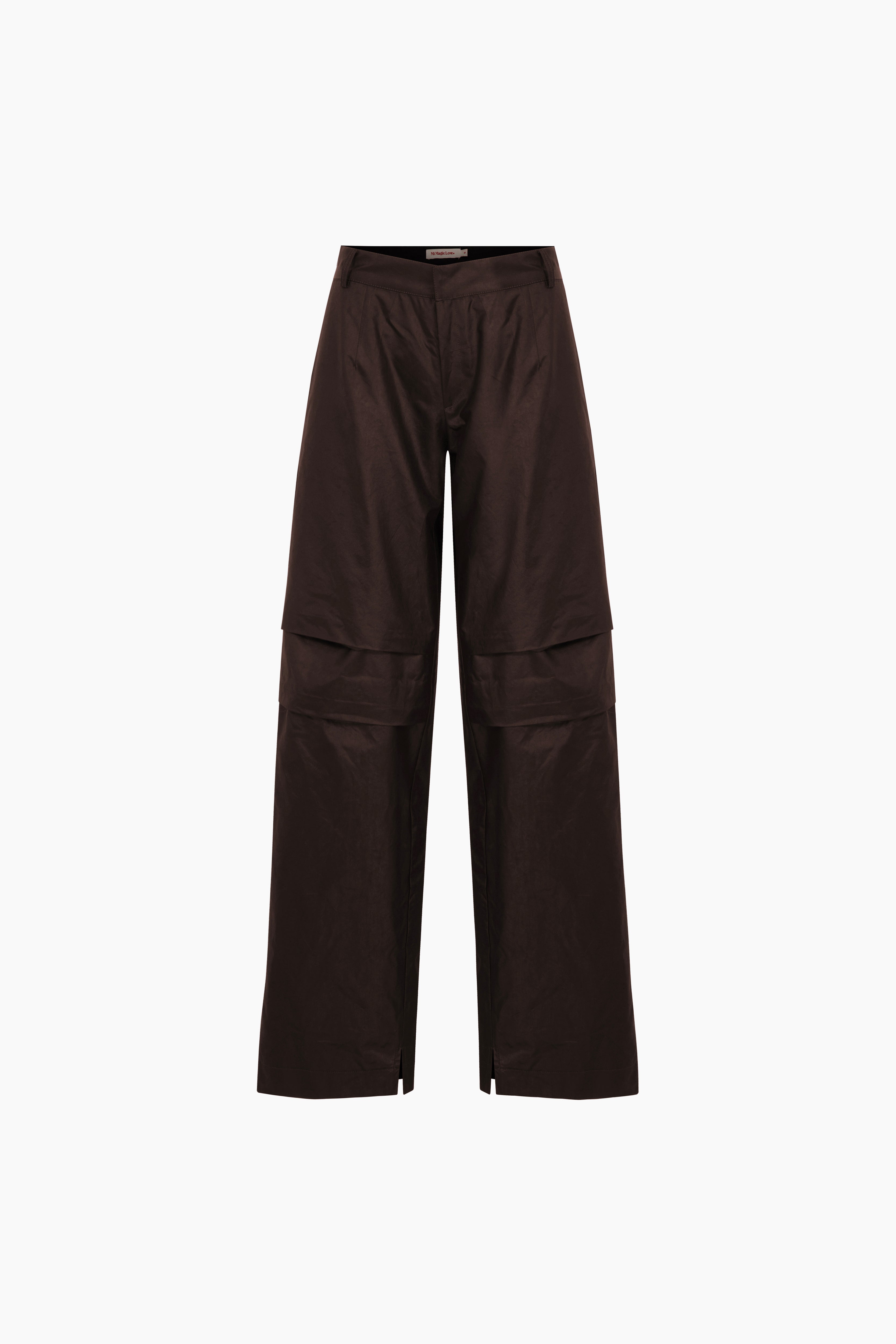 Mimi Cargo Trousers feature a lightly glossy brown fabric that conveys a strong and modern attitude. The low-waist fit and wide-leg form offer a relaxed silhouette, while the cargo style adds a sporty edge. With its leather-like texture, it completes any look with a sophisticated touch. Mi Magic Love — carry the confidence of bold silhouettes.
