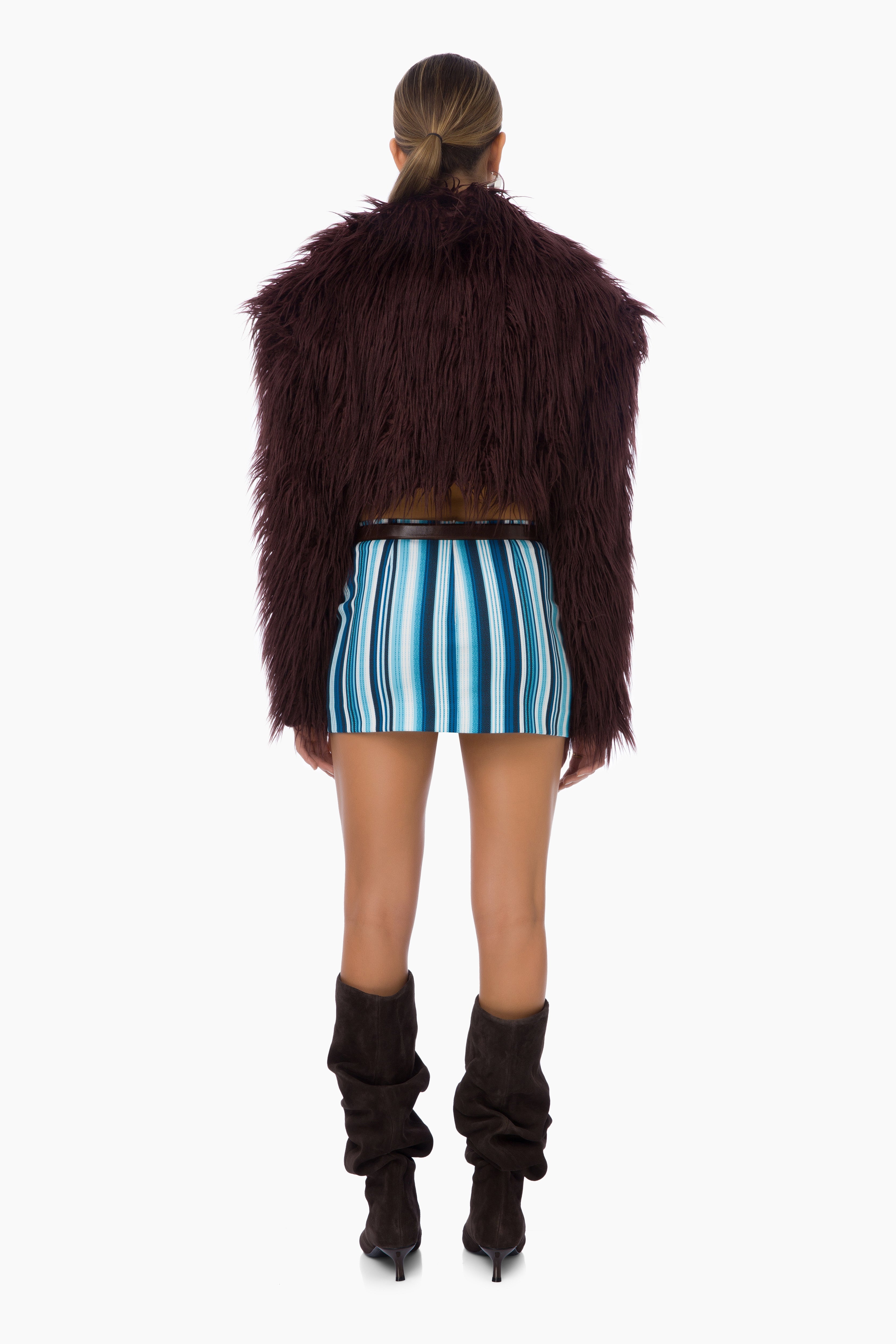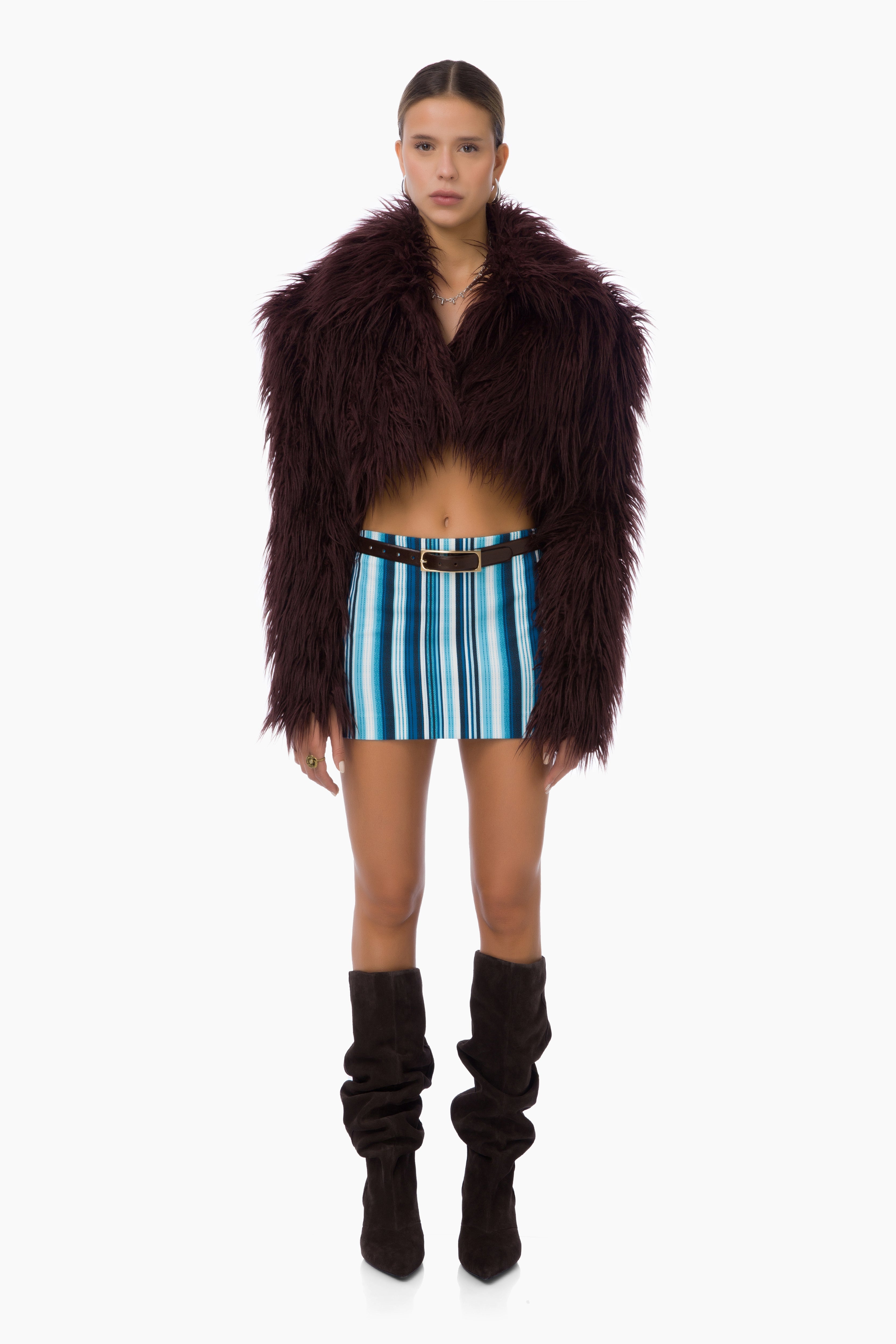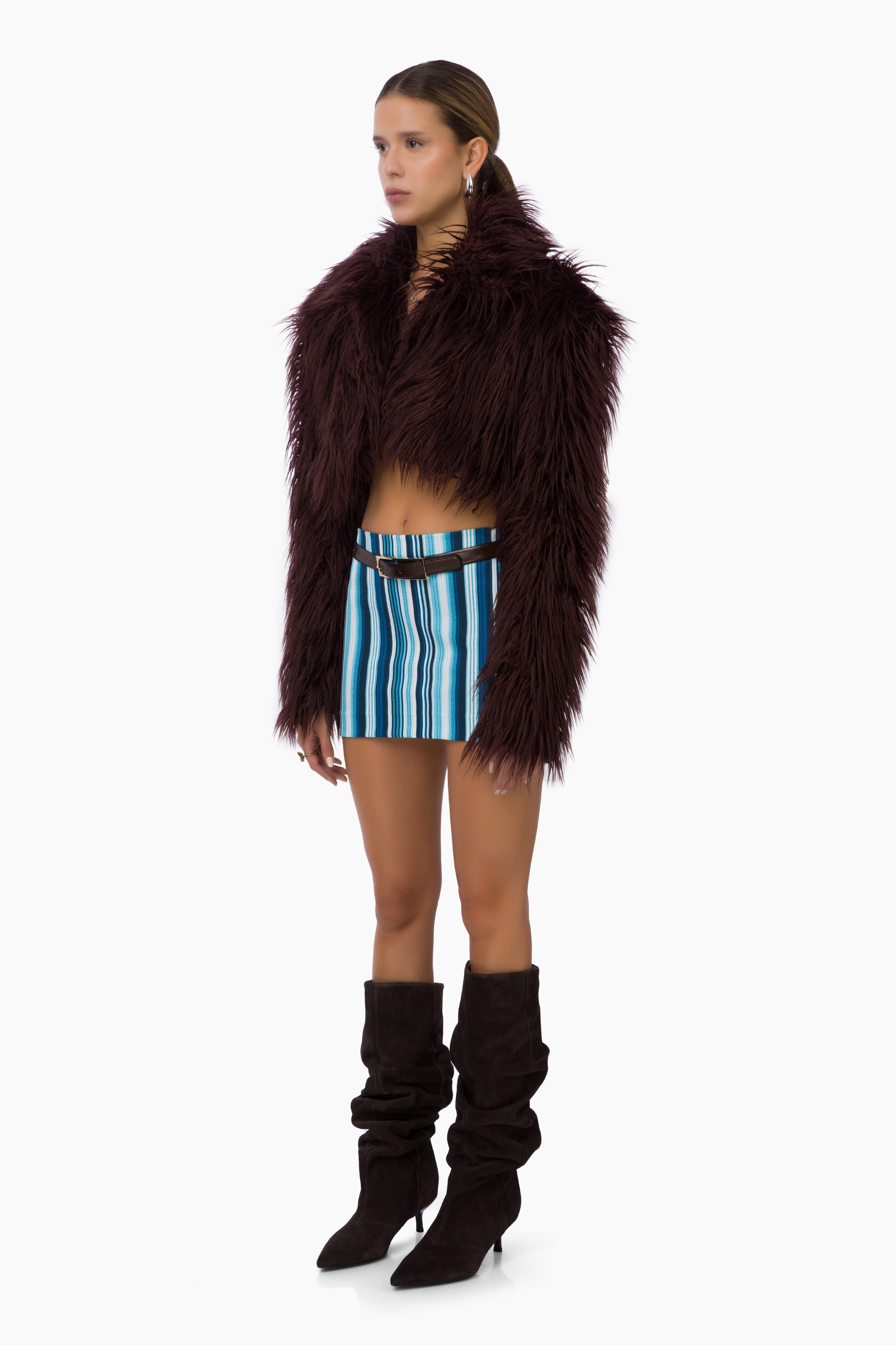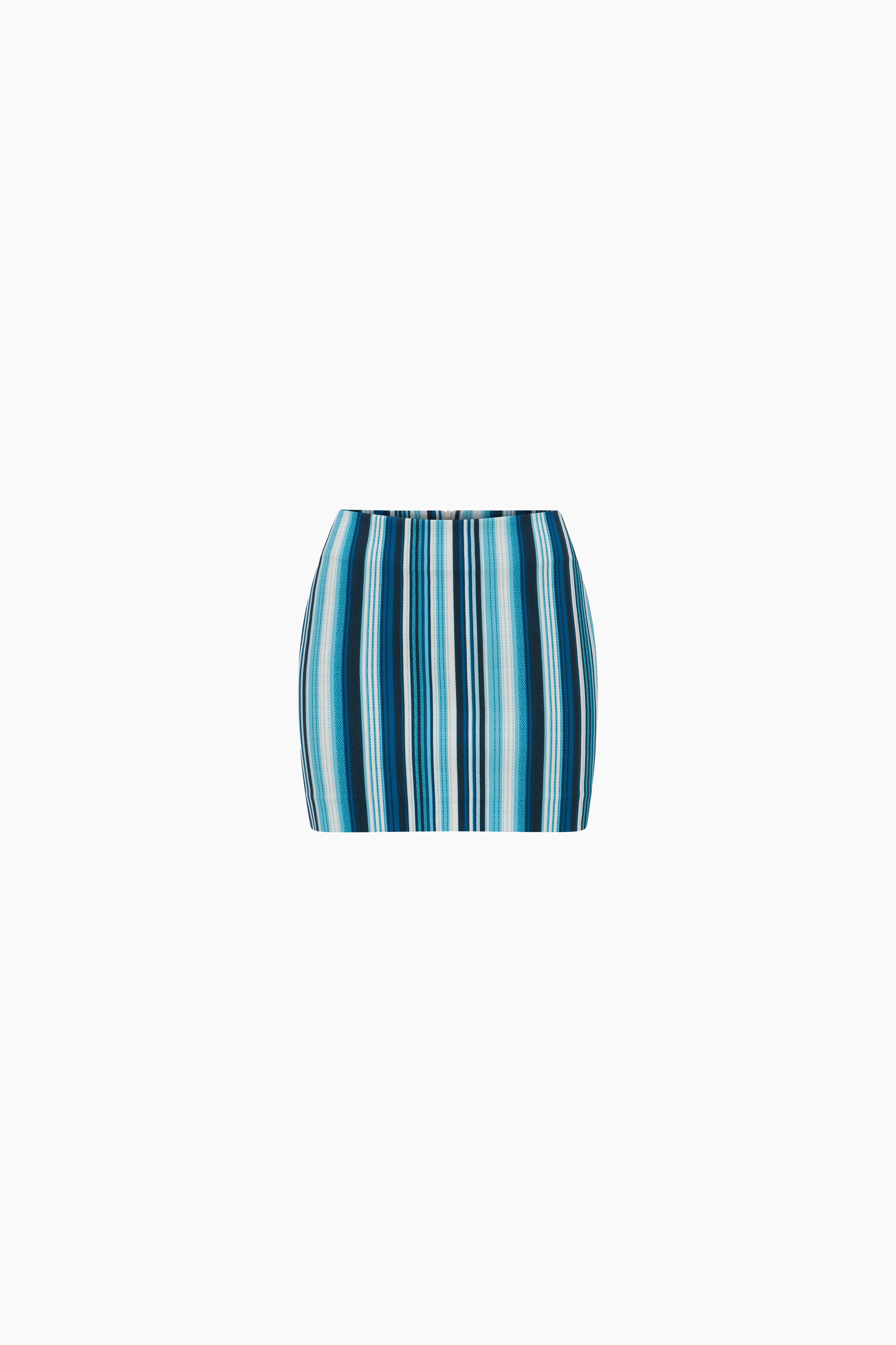 Poetic Mini Skirt Blue Striped delivers an energetic and bold style with its blue-toned striped, self-patterned fabric. The slim cut fits gracefully on the body, creating a modern silhouette, while the zipper detail at the waist ensures practical and comfortable wear. Adding movement to everyday looks, this dynamic piece brings a strong character to your style. Carry the energy of stripes into your look with Mi Magic Love.